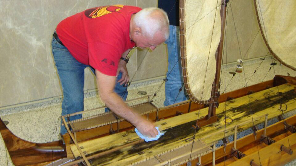 - Hokule‘a model, one-third scale (21 feet) built for The National Science Museum, Tokyo, Japan. (Jay Dowsett)