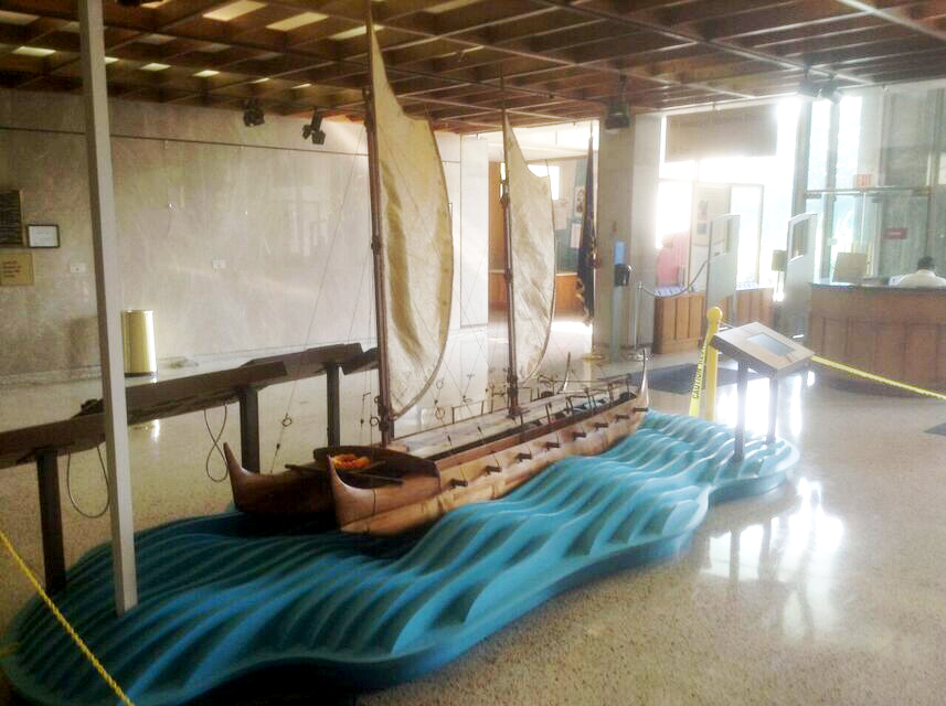 - NOAA Science Building, 30-foot double-hull sailing canoe for display, Hilo. (Jay Dowsett)